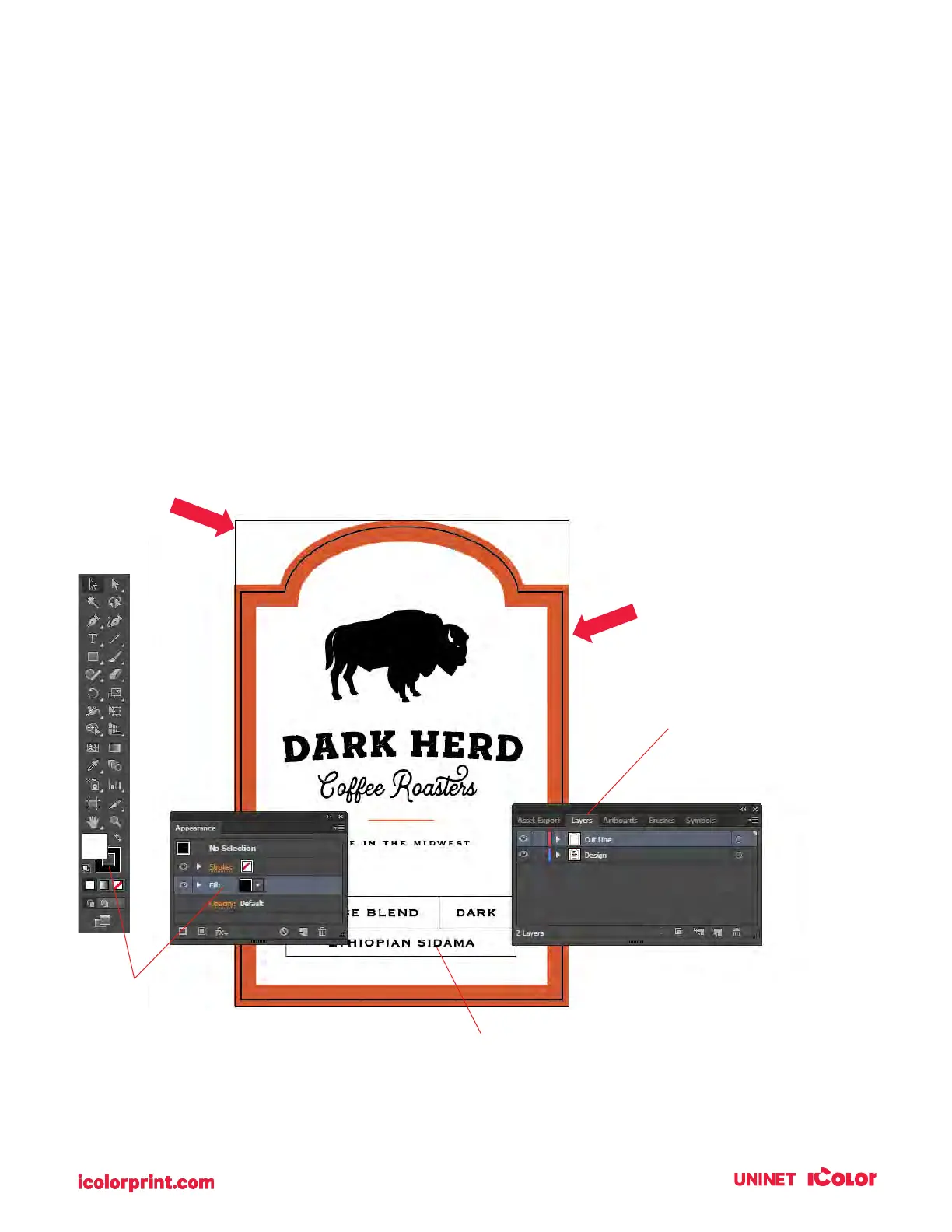 3. Position the cut line exactly where you want it relative to the design. The cut line should be the