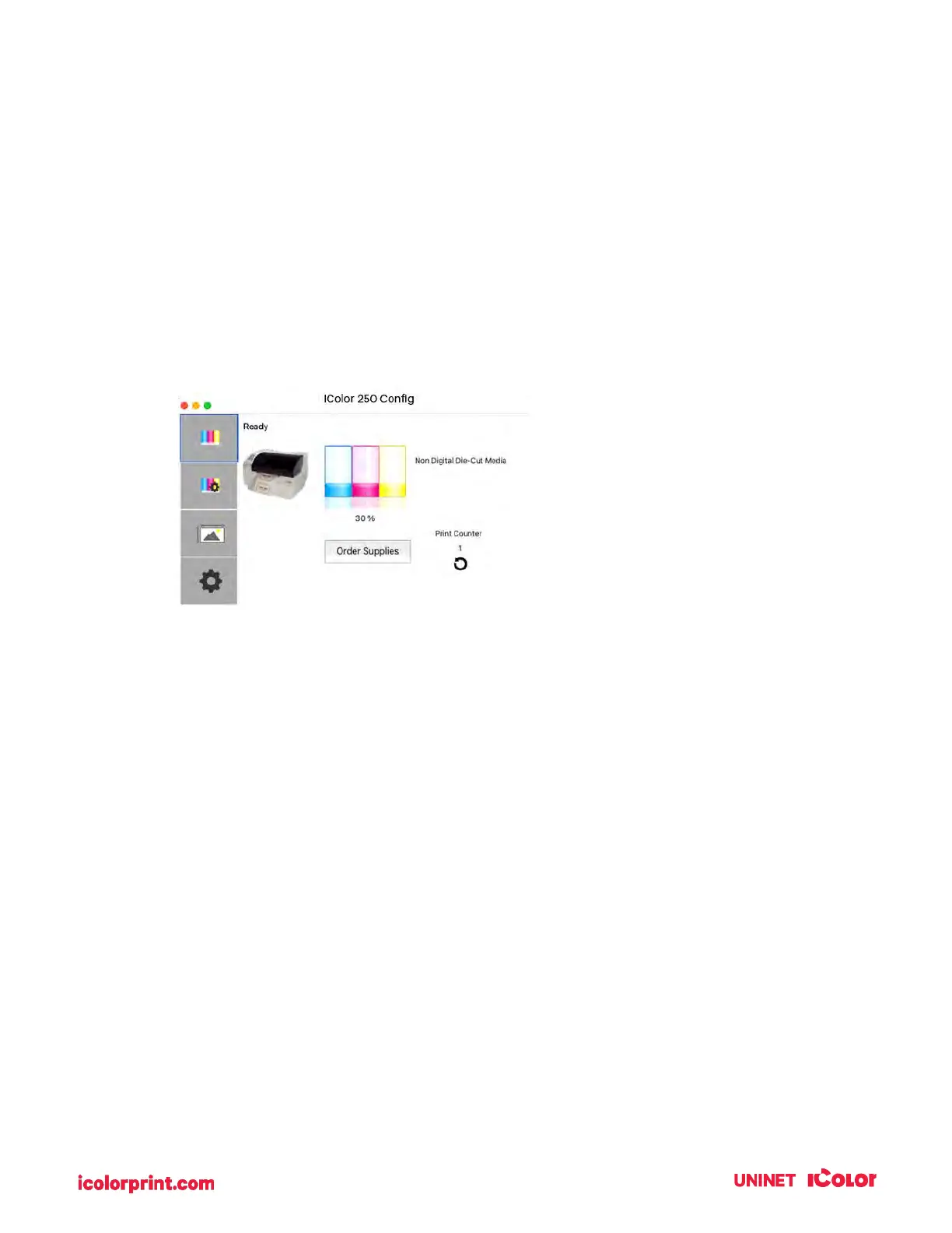 The IColor 250 comes from the factory calibrated to print exactly to the edge of UNINET IColor label