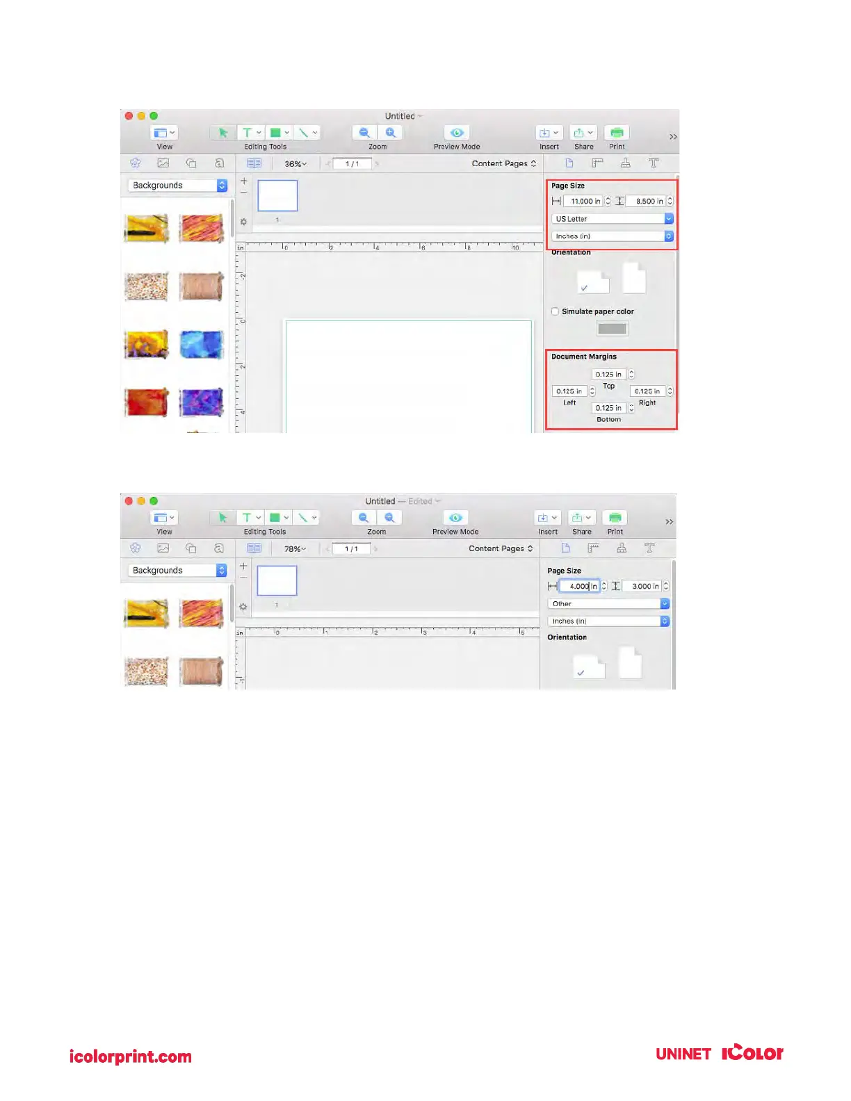 the page size. Orientation is set automatically depending on the page size.
