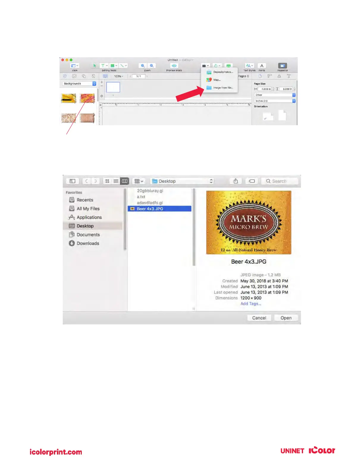 NOTE: You can also add images from the Backgrounds menu included with Swift Publisher.