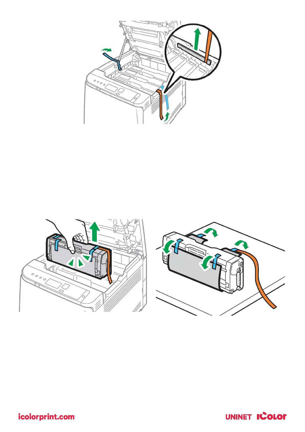 4. Remove the white toner cartridge from the front of the machine.