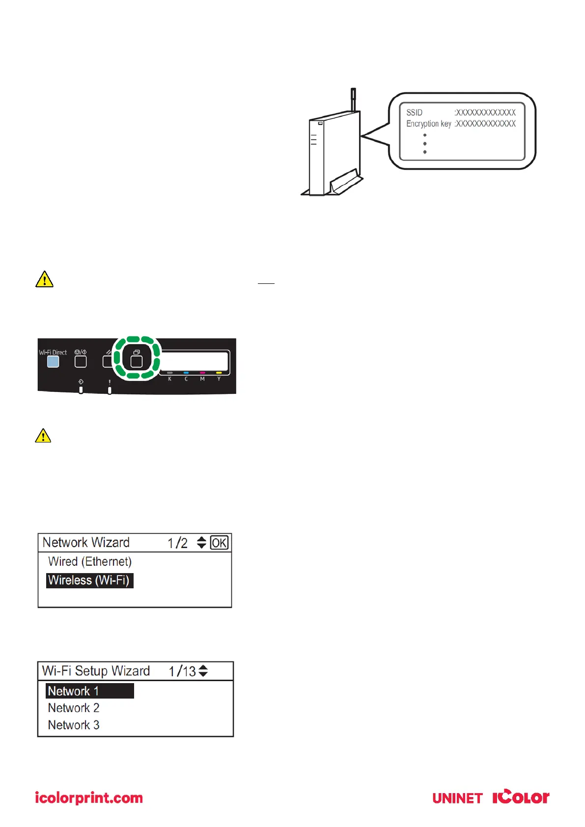 • The SSID and Encryption key for the router (access point) may be printed on a label affixed to