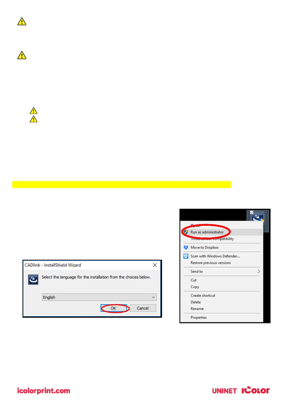 • The IColor ProRIP dongle must be inserted at all times when installing or running the program.
