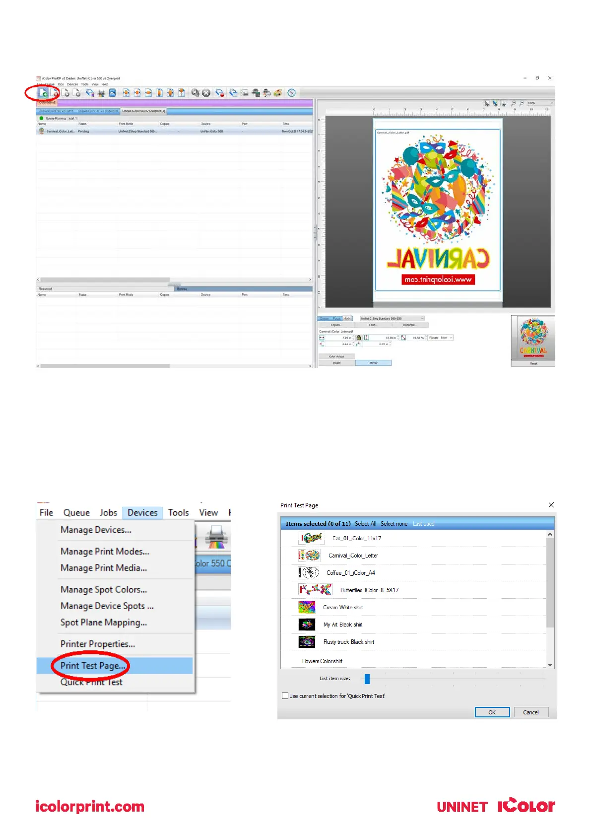 12) There are preloaded images that can used to print a test page. Click Devices >> Print Test Page to see