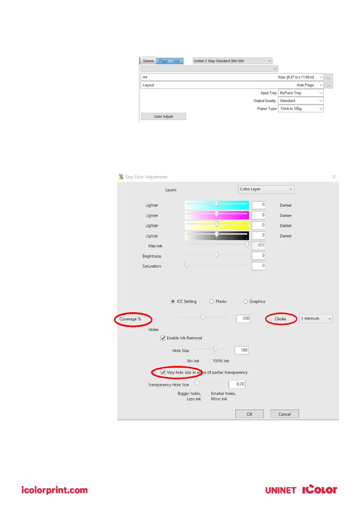 underprint (depending on