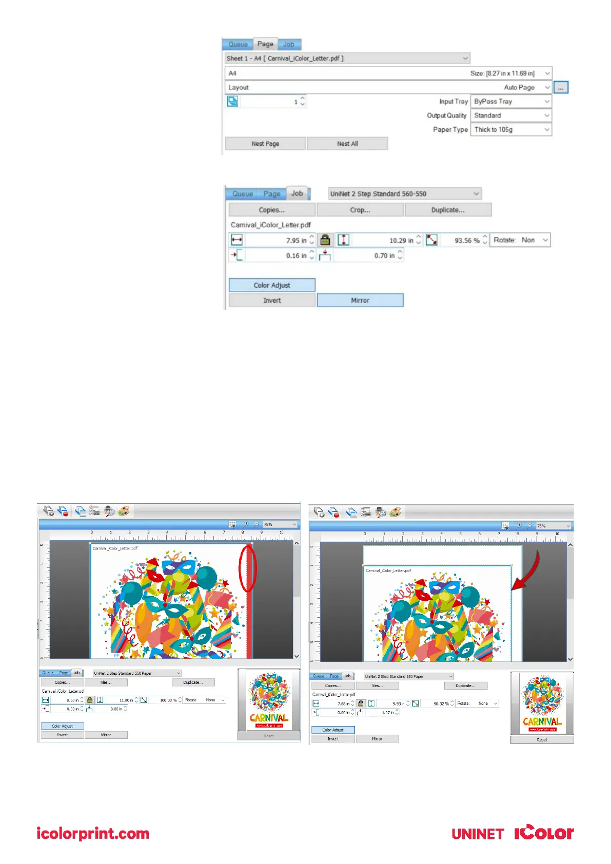 • In this example, where we have a letter sized image placed on an A4 artboard, the red bar to the right of