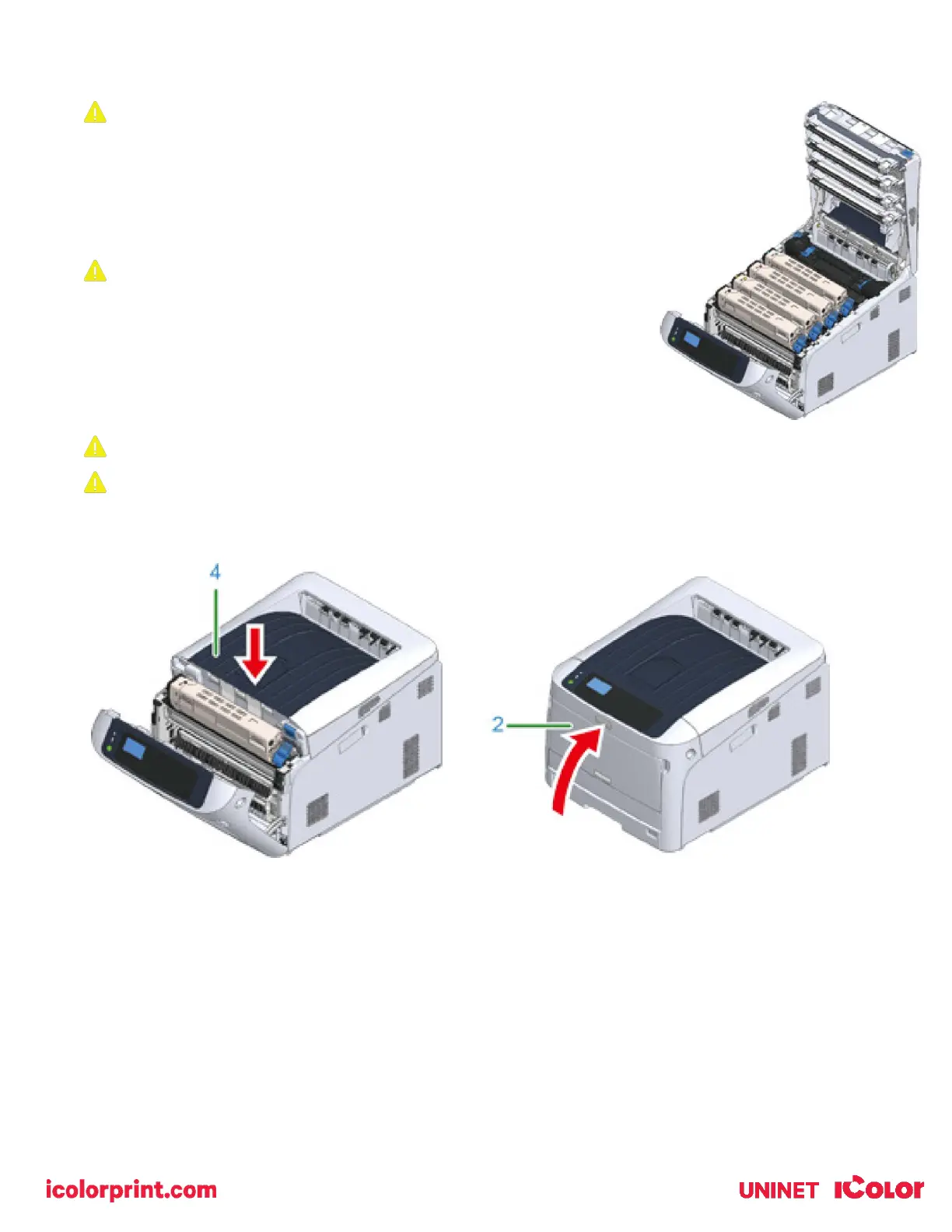 necessary to turn the blue lever. Doing so can cause toner to spill.