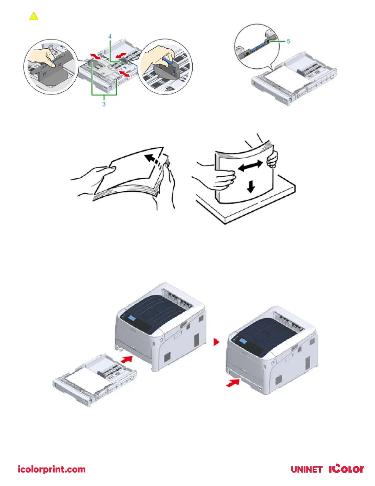 4) Fan a stack of paper well, and then align the edges of the paper. Load the paper with the print side face down.