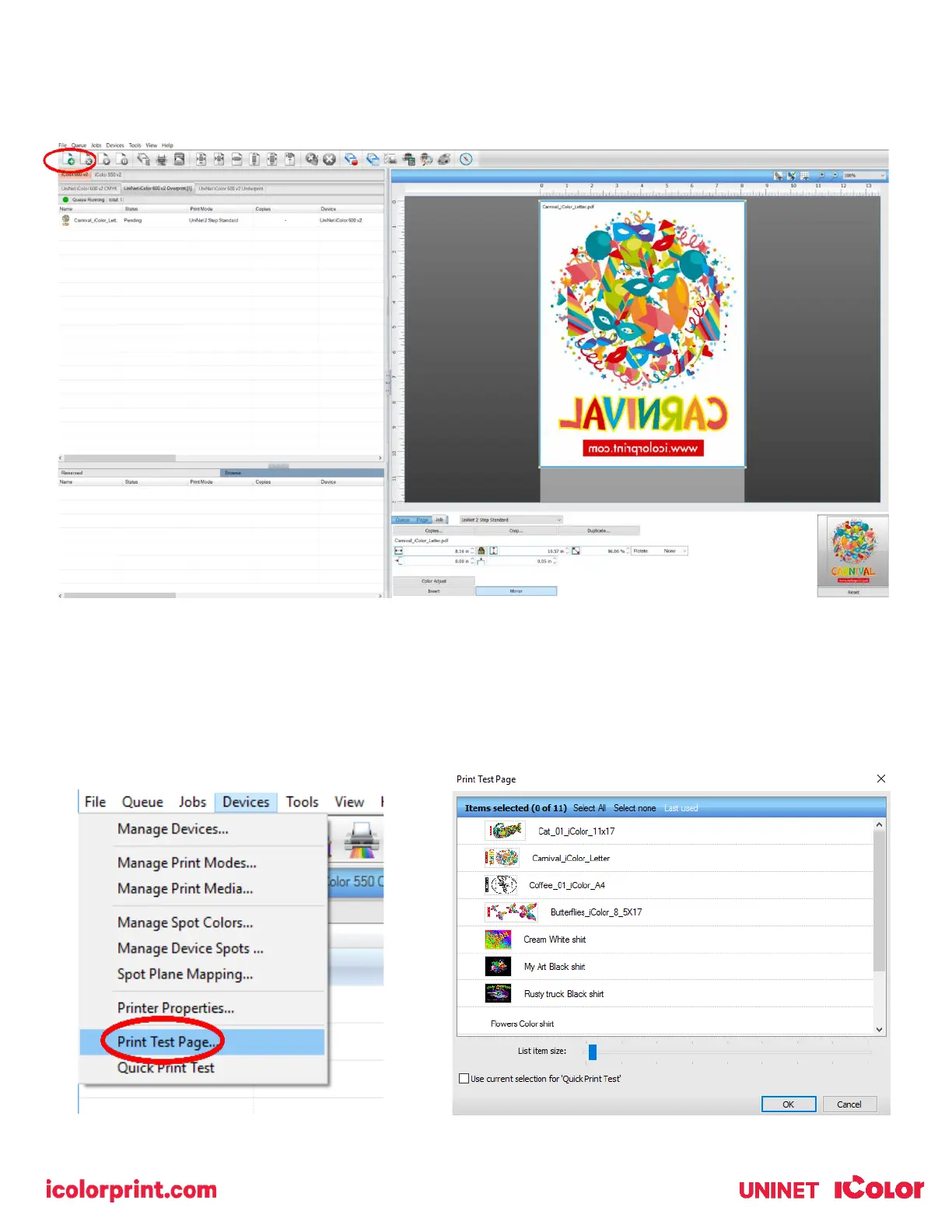 12) There are preloaded images that can used to print a test page. Click Devices >> Print Test Page to see the