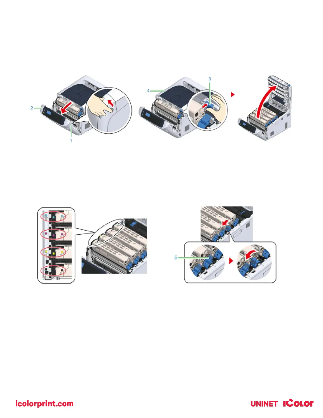 4) Take note of the toner cartridge color installed in the 4