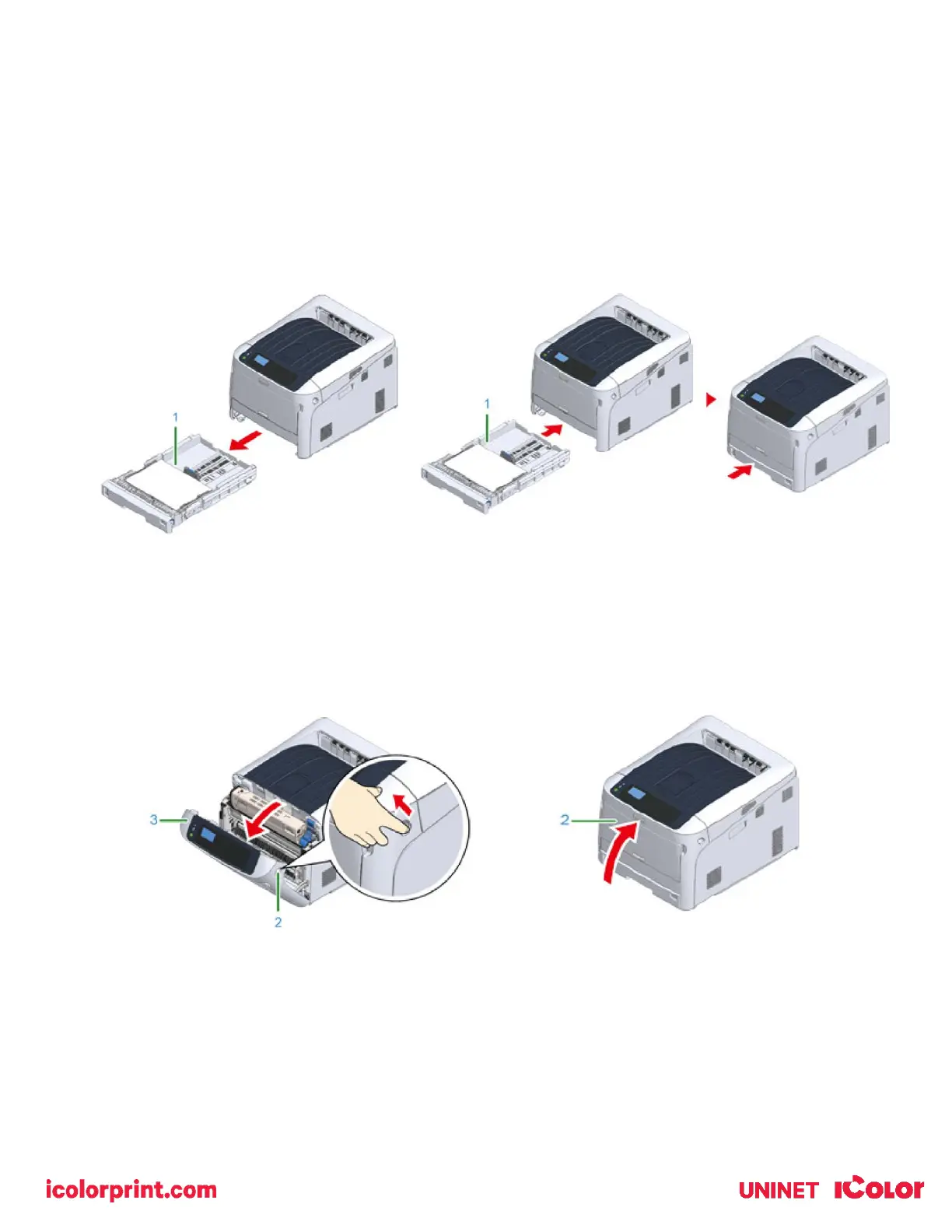 4) Open and close the front cover to clear the error.