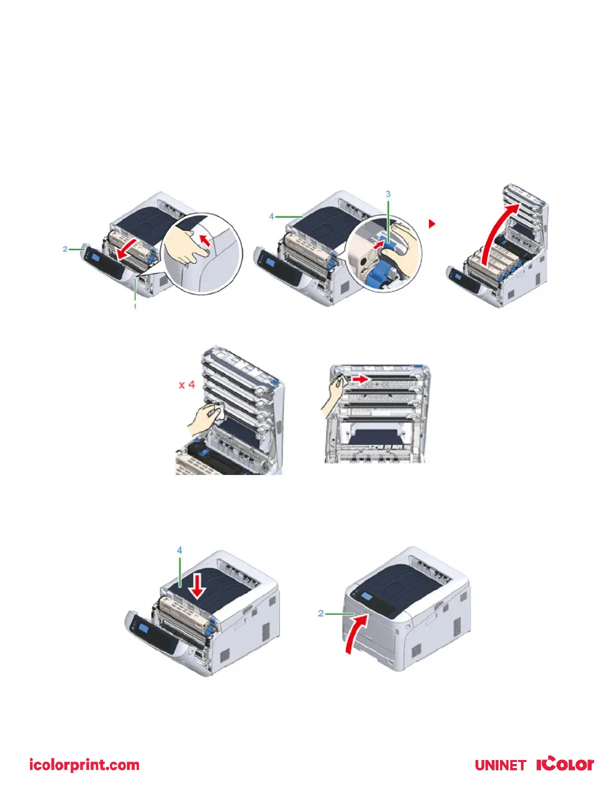 4) Close the output tray (top cover) (4) by pushing down on the center of the cover firmly.