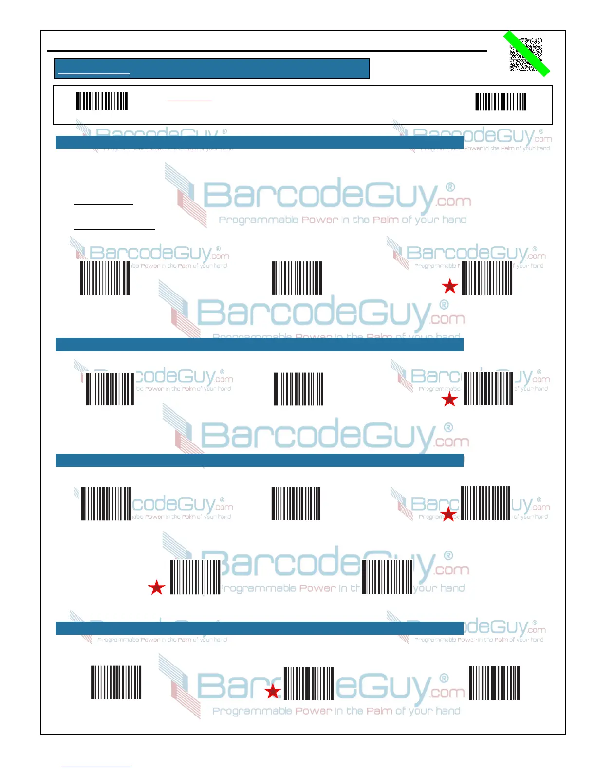 Instructions: To change the option, first scan the Programming “ON” barcode.