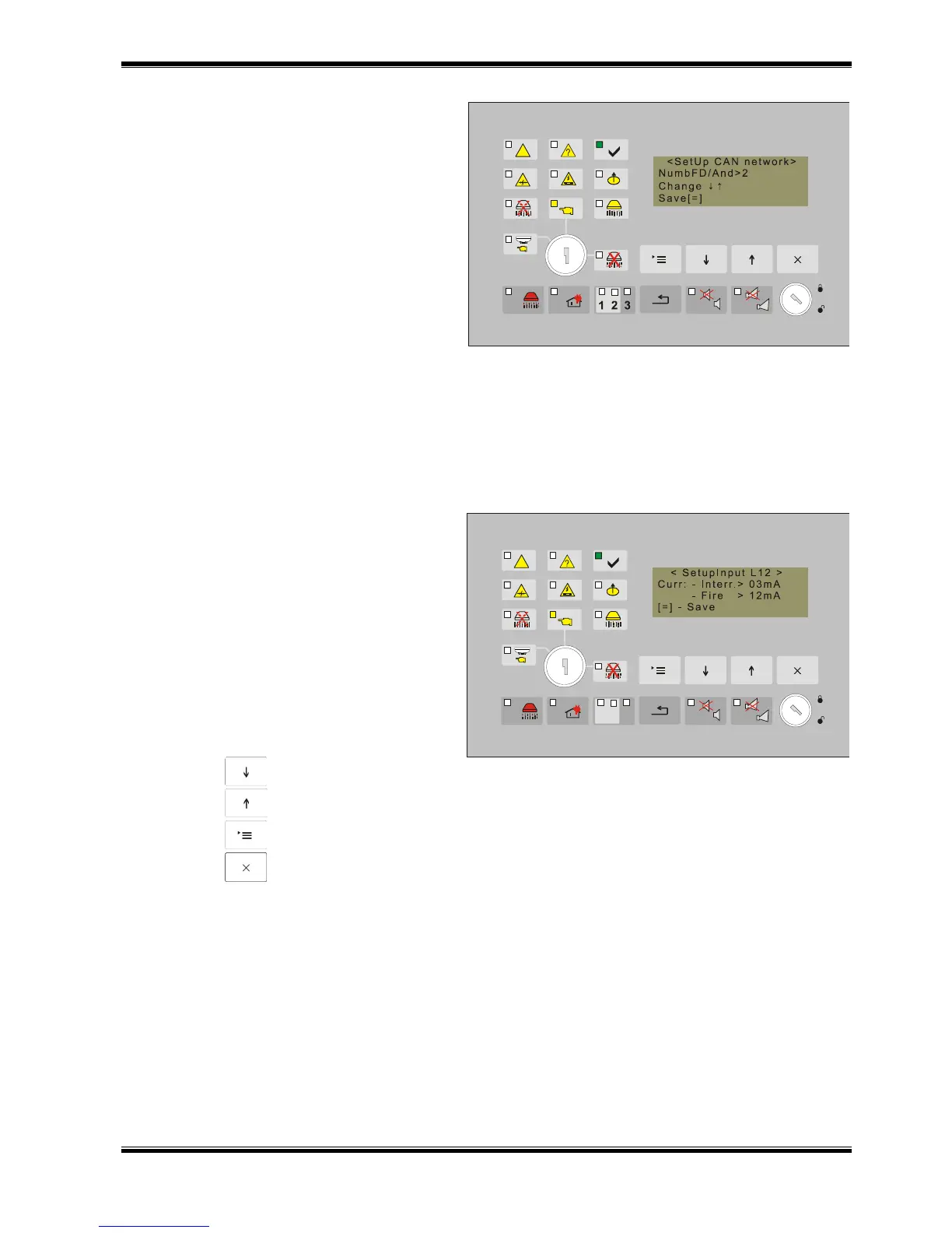 button (Up) – to pass from setting the current of interruption to setting the current of fire;