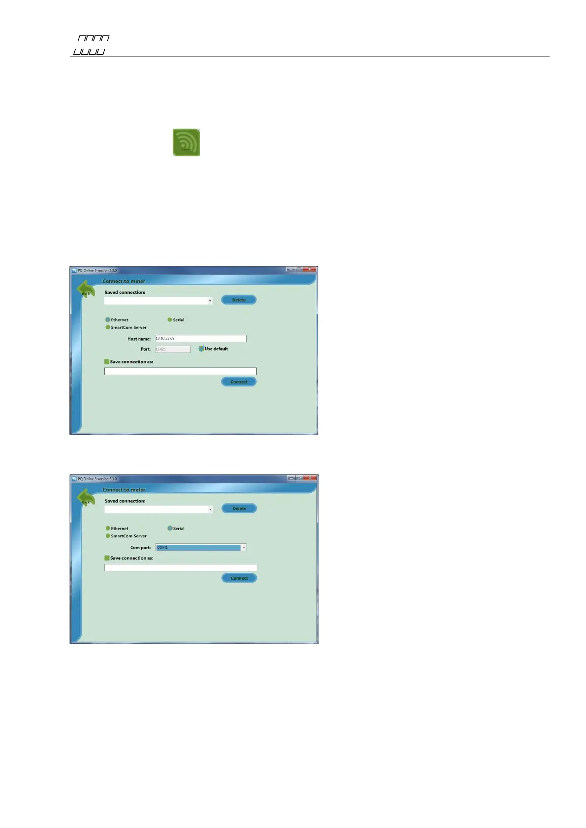 When you have started the program and pressed “Connect” a connect to meter dialogue will