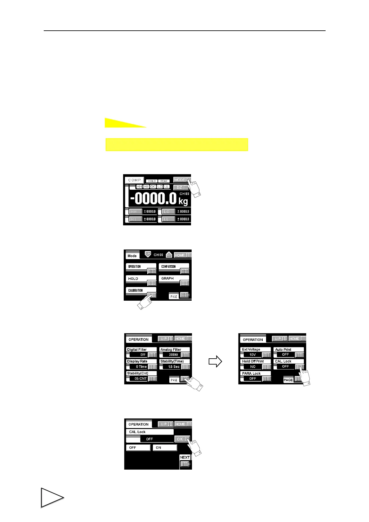 3)Press the PAGE button to select the page twice and press the Cal Lock button.