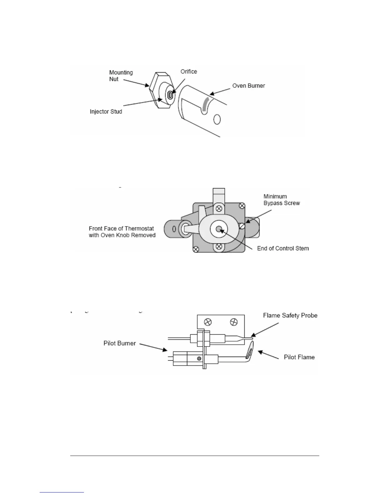 under the flame safety probe. The flame of the oven pilot ignites main burner gas