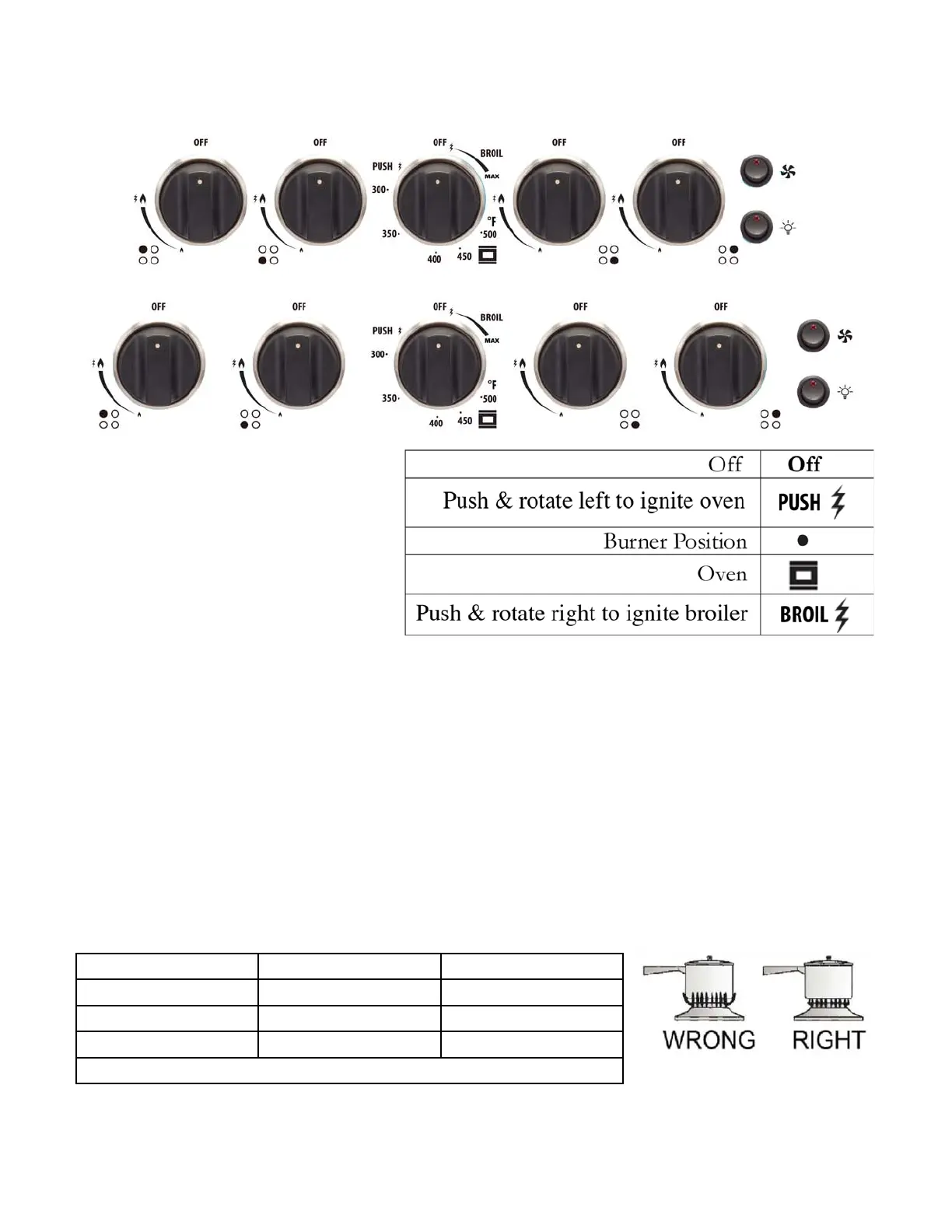 3.To light a burner, press the burner knob in and turn counter clockwise to