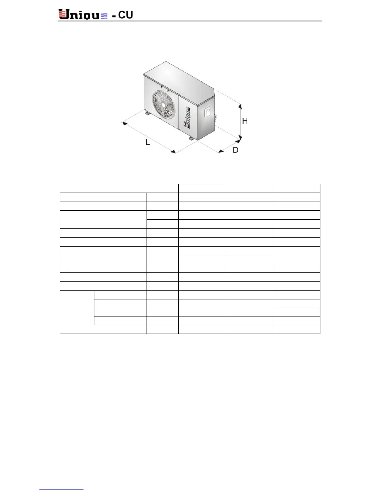 2.1.2 Outdoor Unit Data – Models CU150, CU200, CU250
