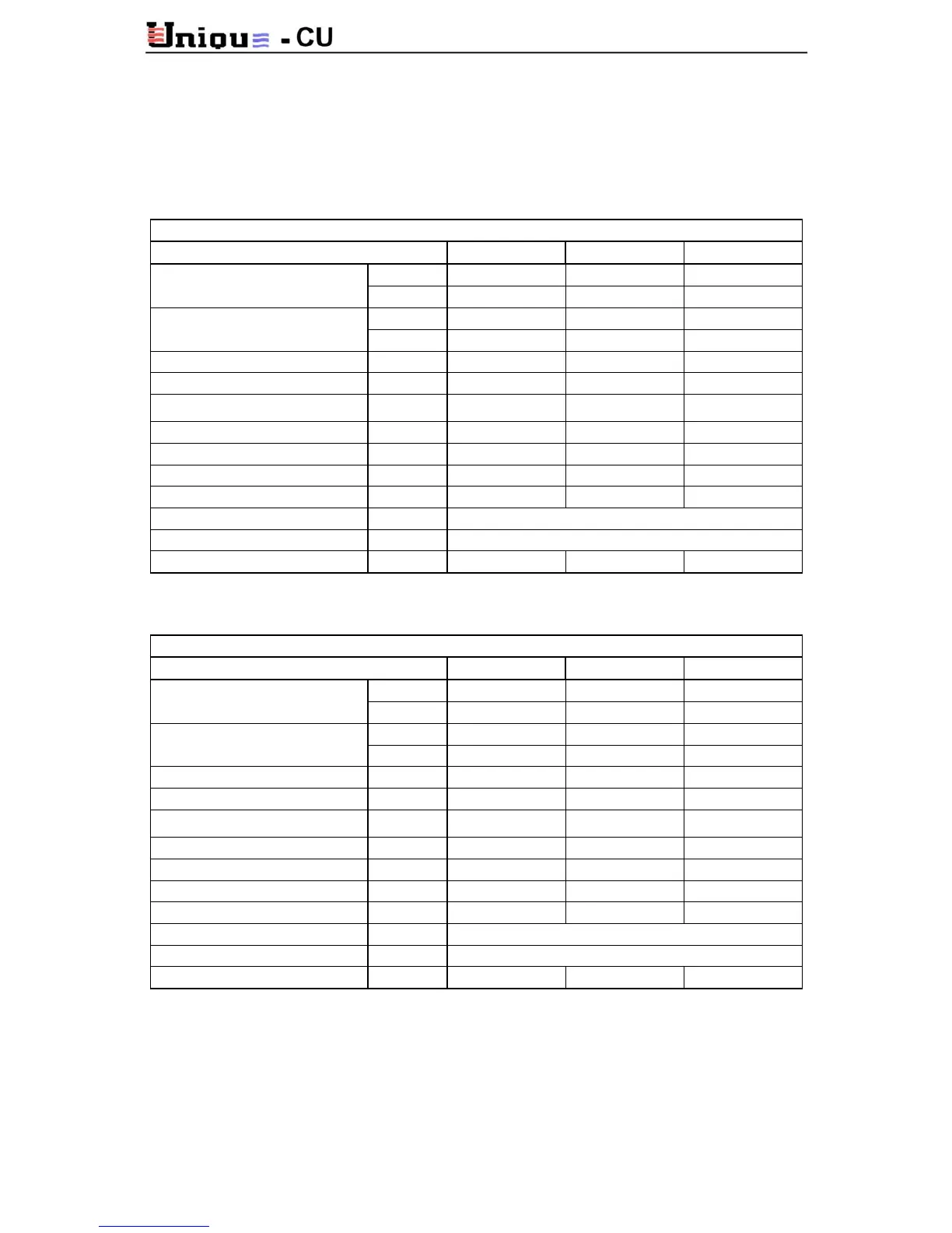 2.4 Technical data table – Models CU600, CU700, CU800