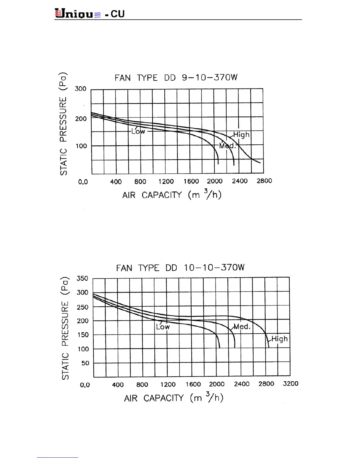 Unique CU Series - Air Flow Curves Fans DD 9-10-370 W and DD 10-10-370 W