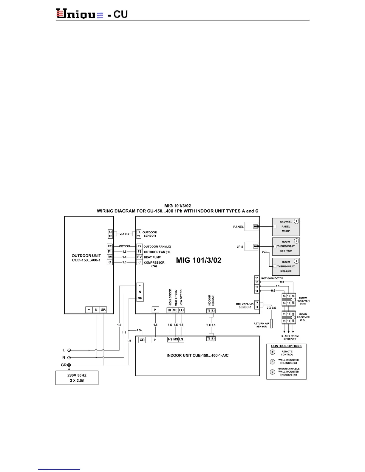 8.3 Wiring Diagrams - Indoor and Outdoor Units.