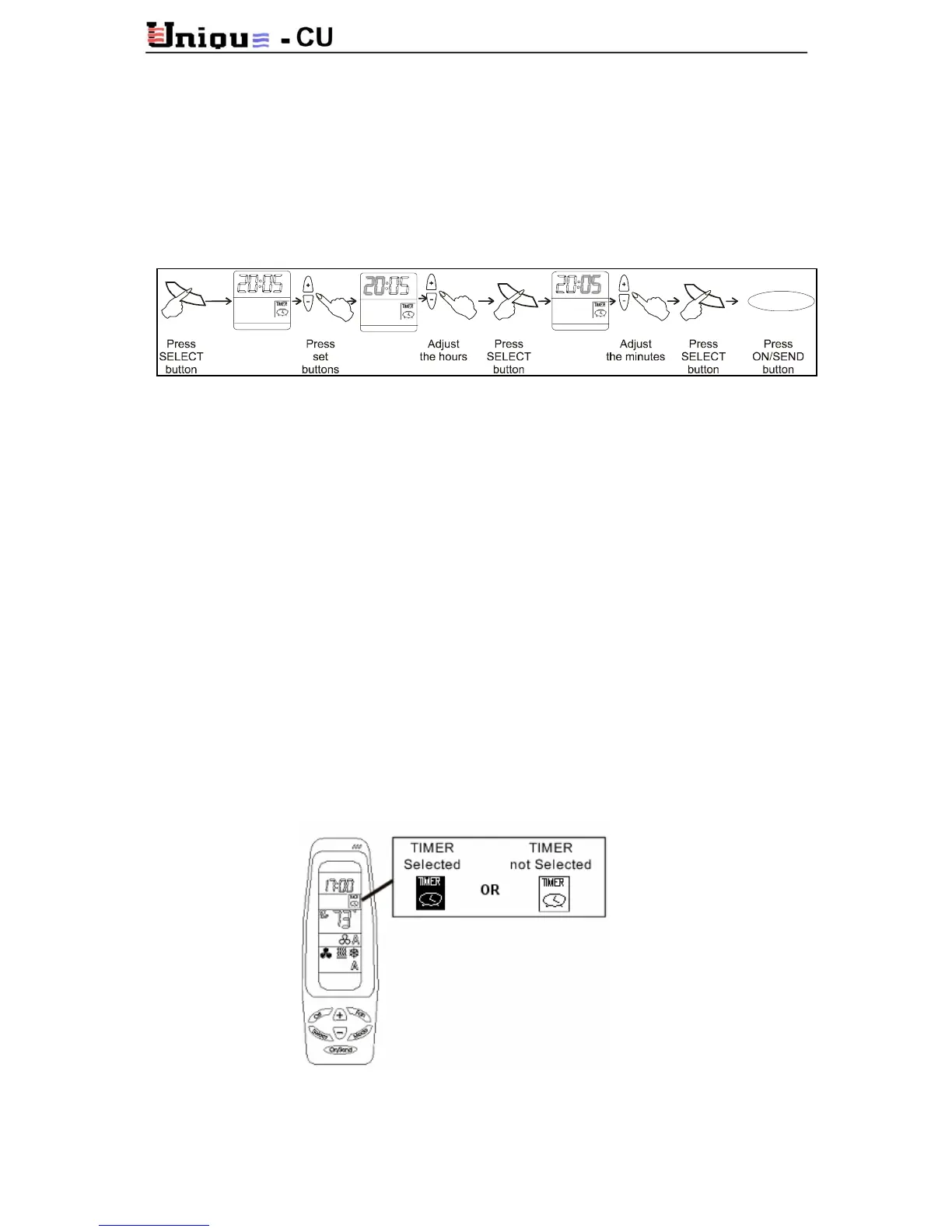 SELECT button, the TIMER will blink; using the (+) or (-) buttons, Select TIMER ON or