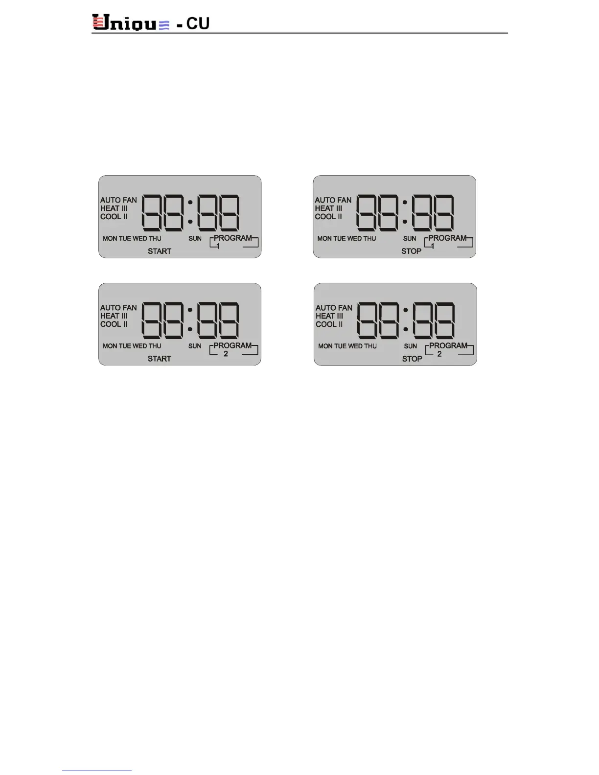 Two programs are available for setting each week day, Monday – Friday. Another two