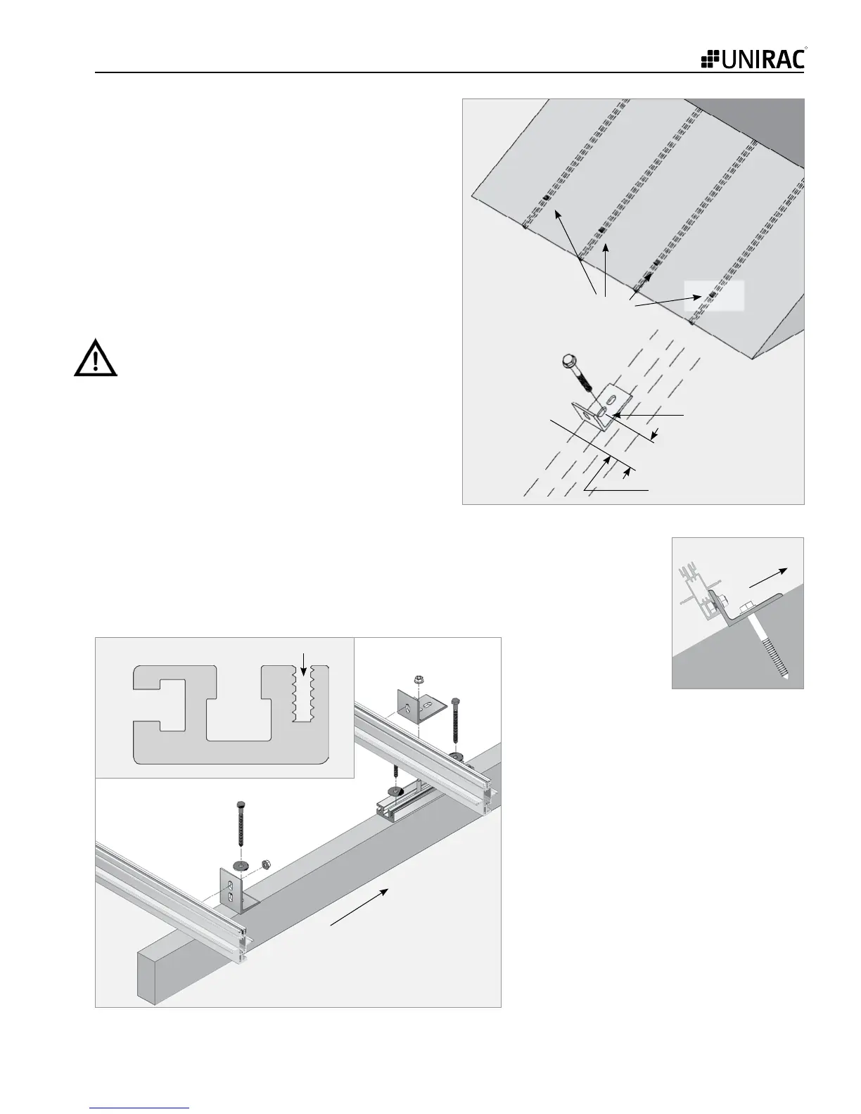 If the double slotted sides of the L-feet are against the roof, lag through the slot nearest the bend