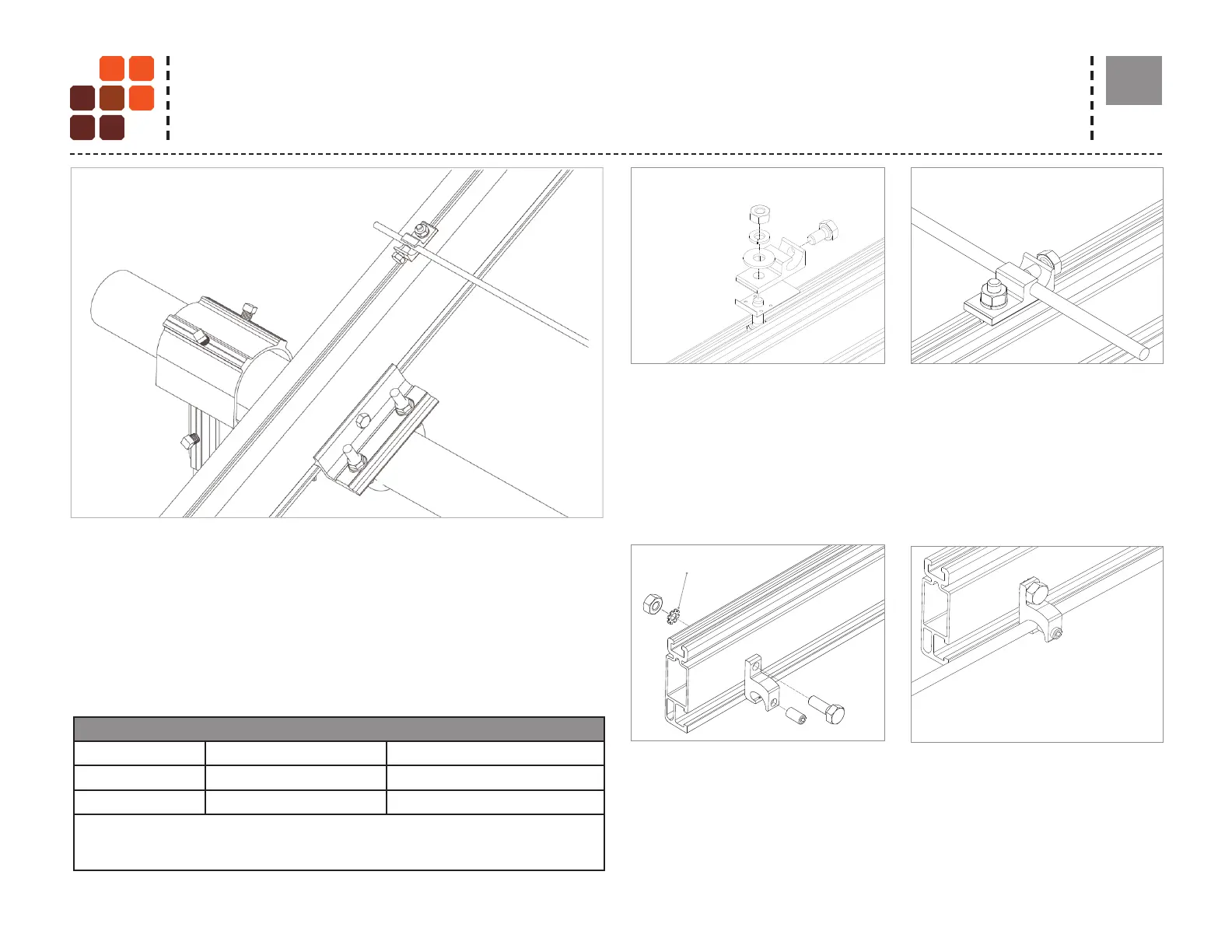 - Drill, deburr hole and bolt thru both rail walls per table.