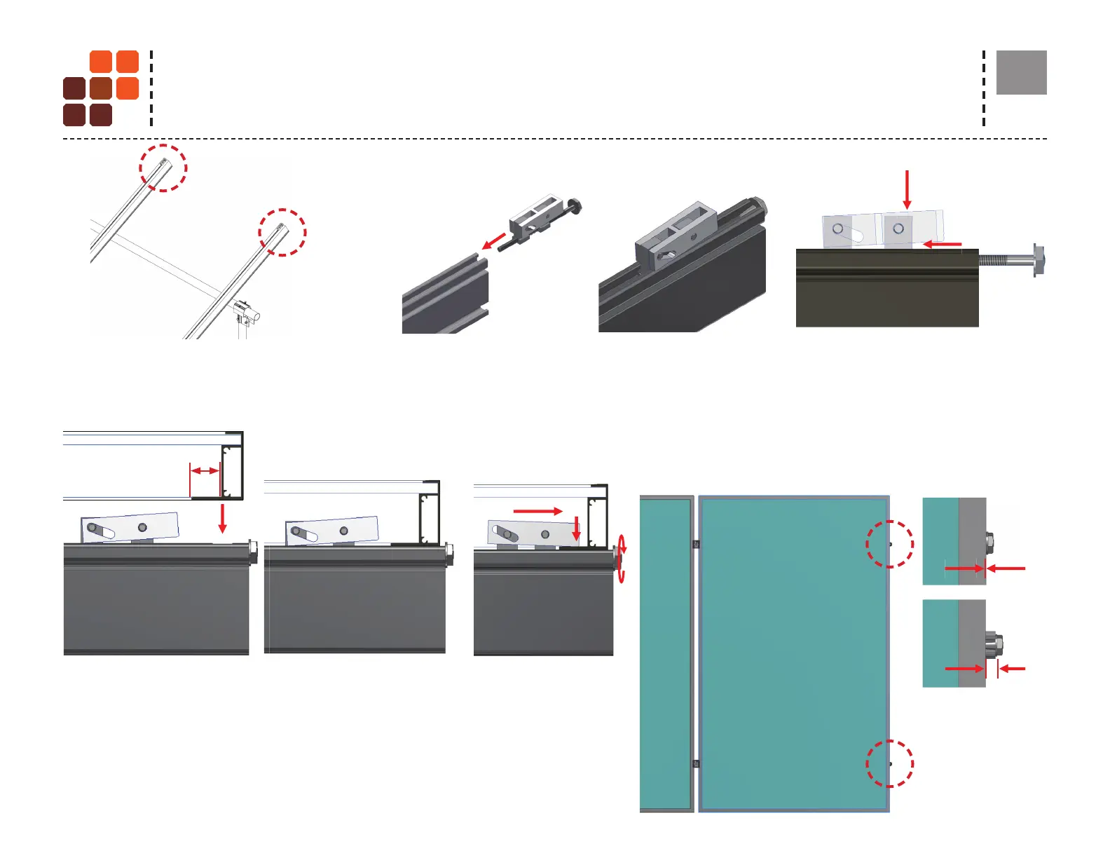 INSTALL END CLAMPS ON RAIL: