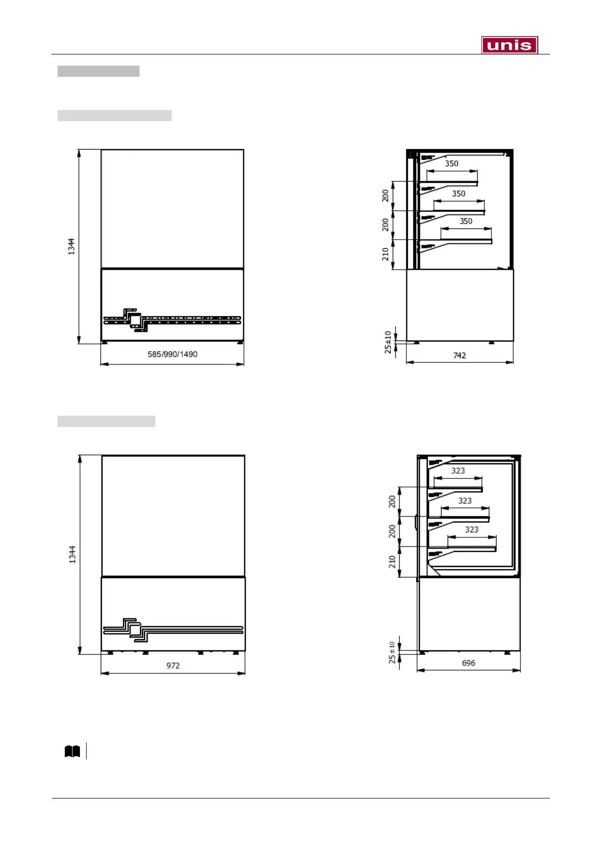 UNIS CUBE II - Dimensions; CUBE II 600;1000;1500 Dimensions; CUBE II 45° CORNER Dimensions