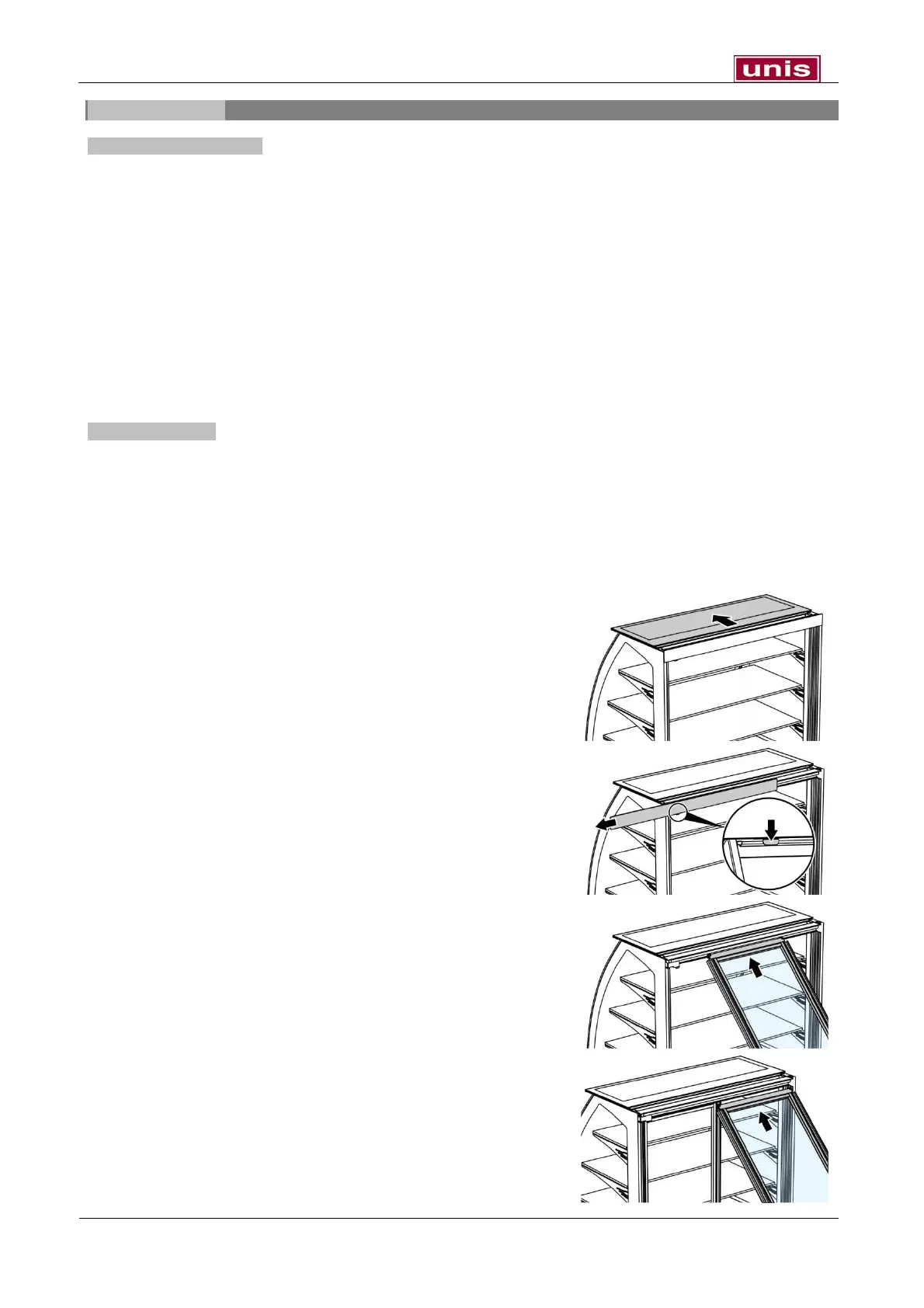 Align the showcase by turning the adjustable feet with wrench nr. 24 into horizontal position. After the