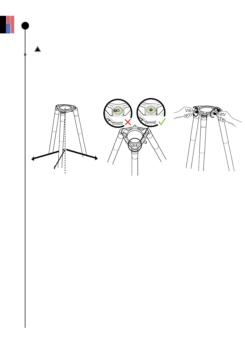 Tighten the tripod screws with the tools included in the box to prevent the telescope