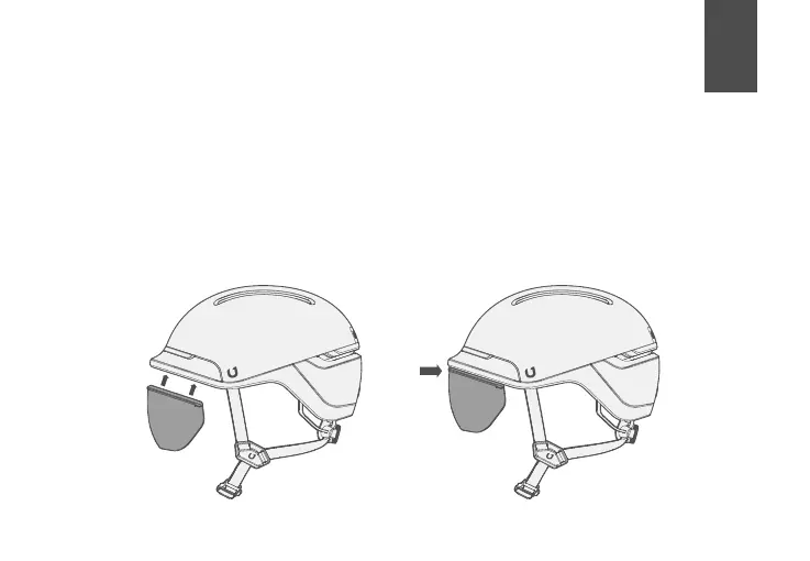 To install the Visor, first put on the helmet and firmly secure it to your head before installing the