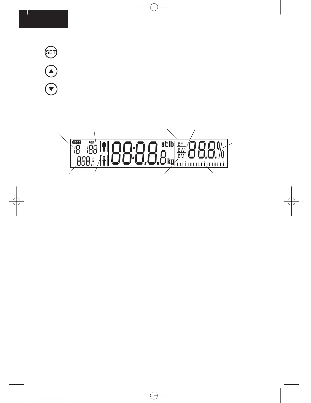 1. Wake up the unit. LCD segments light up briefly. By pressing button ‘SET’ key will take you