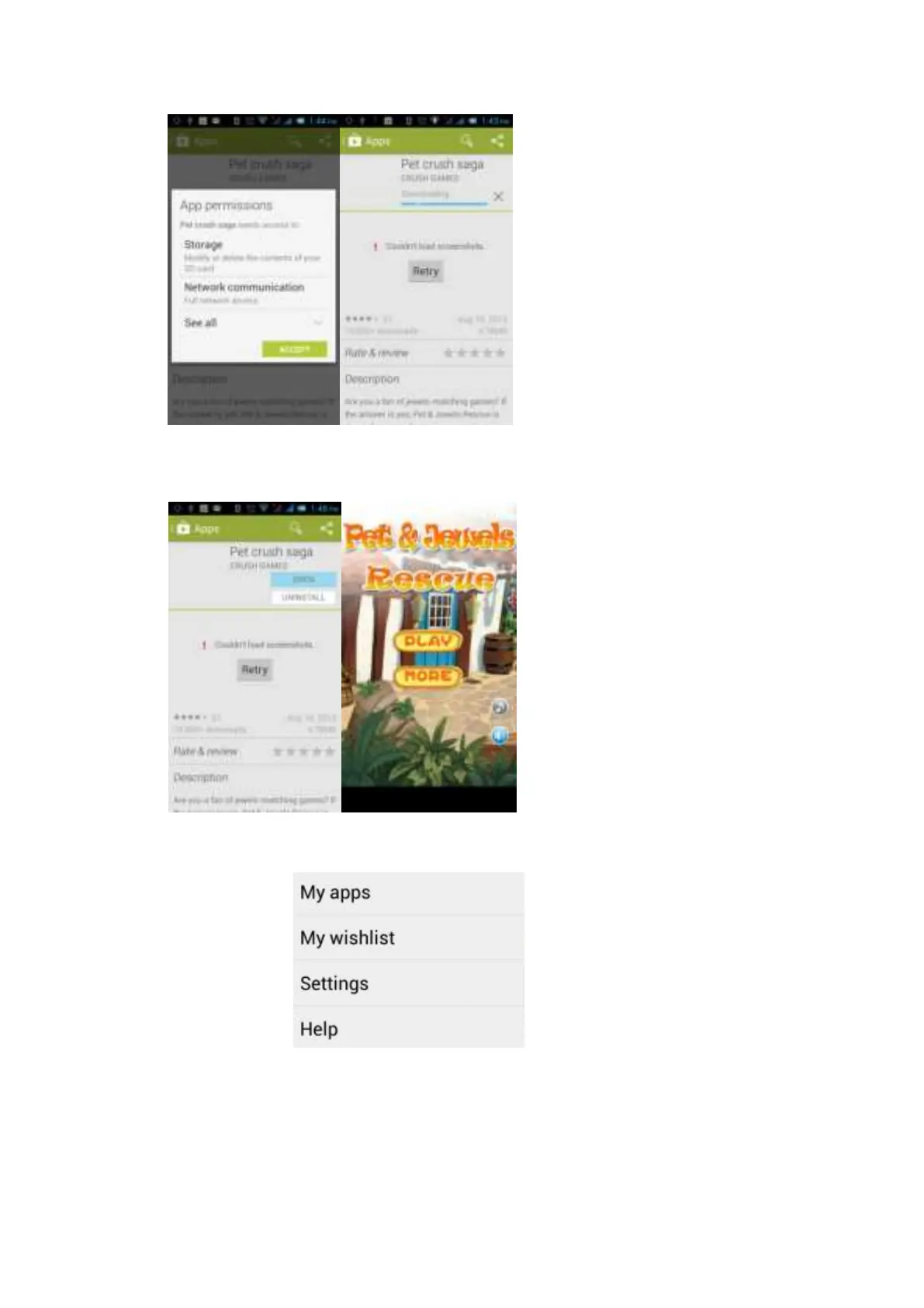 Click Menu on the home page of the Play Store and the following Menu will pop up: