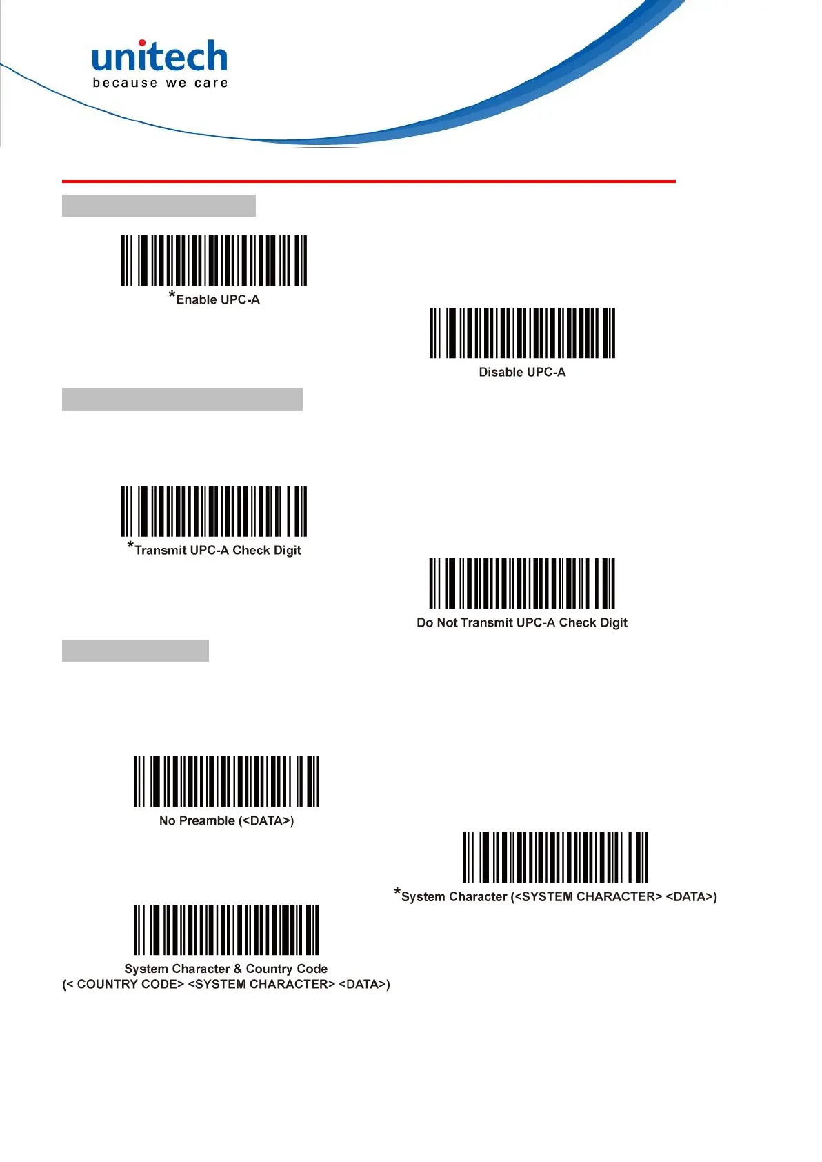 System Character. There are three options for transmitting a UPC-A preamble to