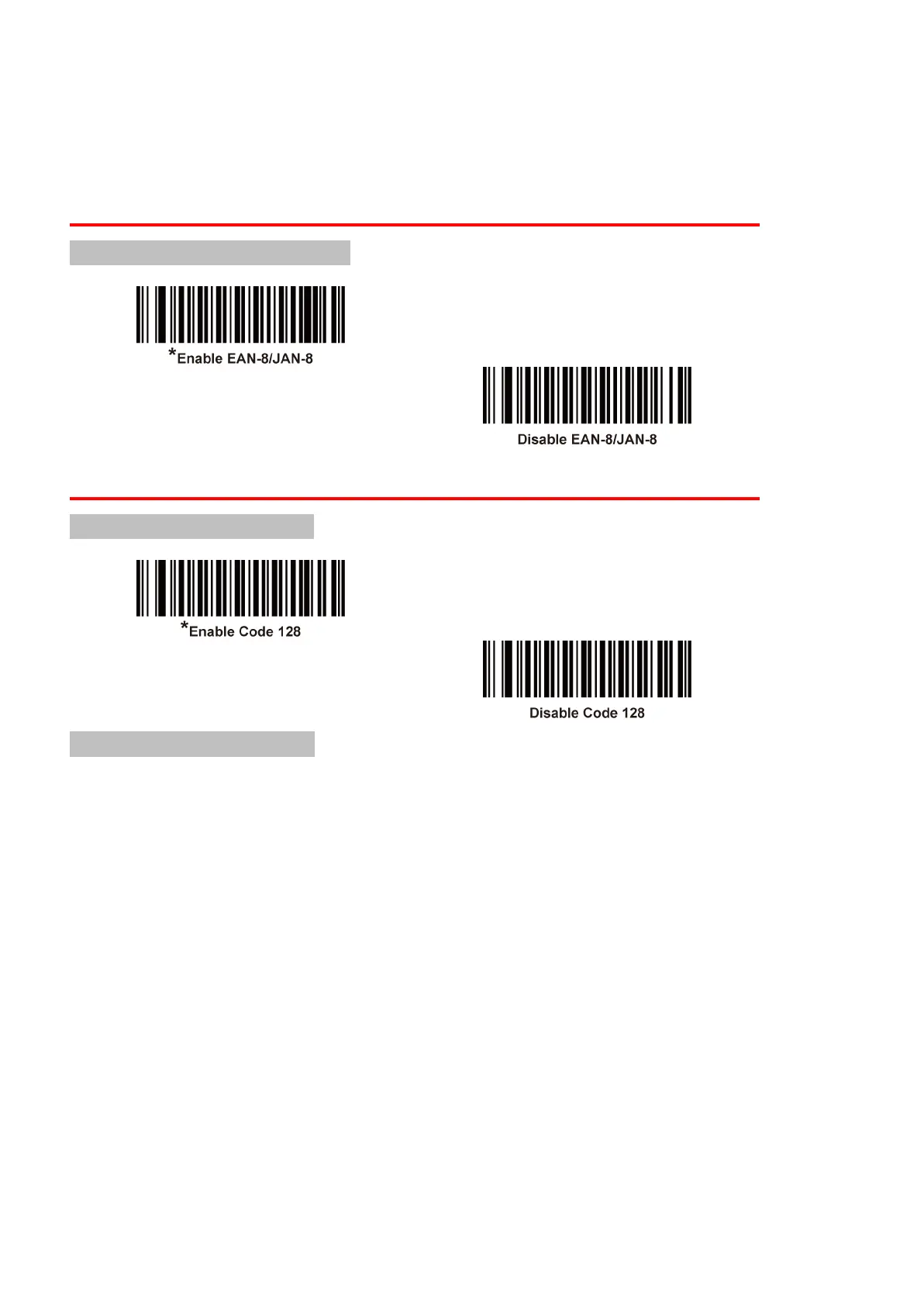 To enable or disable EAN-8/JAN-8, scan the appropriate bar code below.
