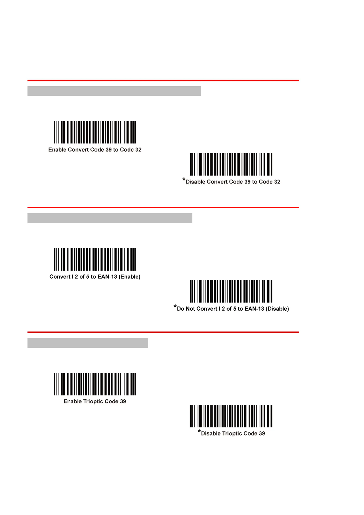 the appropriate bar code below to enable or disable converting Code 39 to Code
