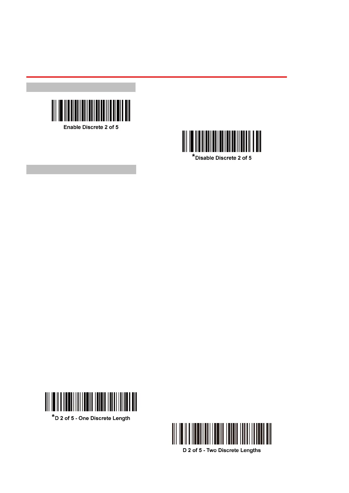 To enable or disable Discrete 2 of 5, scan the appropriate bar code below.