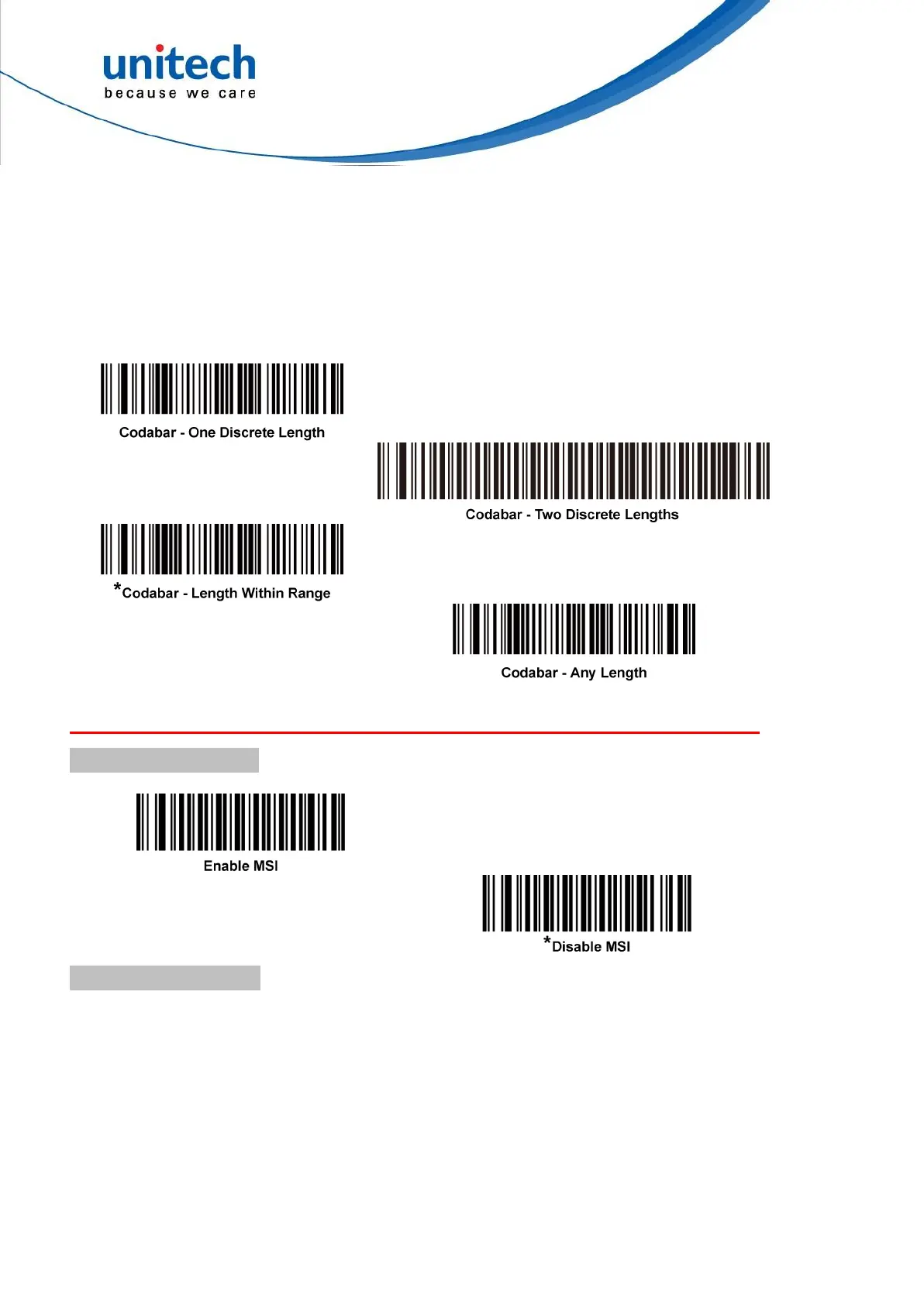 characters), including check digit(s) the code contains. Set lengths for MSI to any