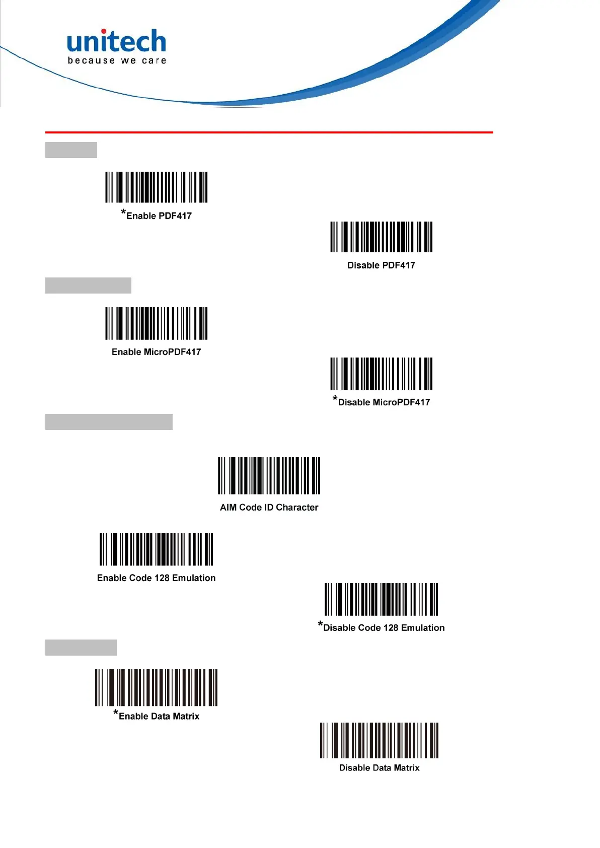 To enable or disable MicroPDF417, scan the appropriate bar code below.