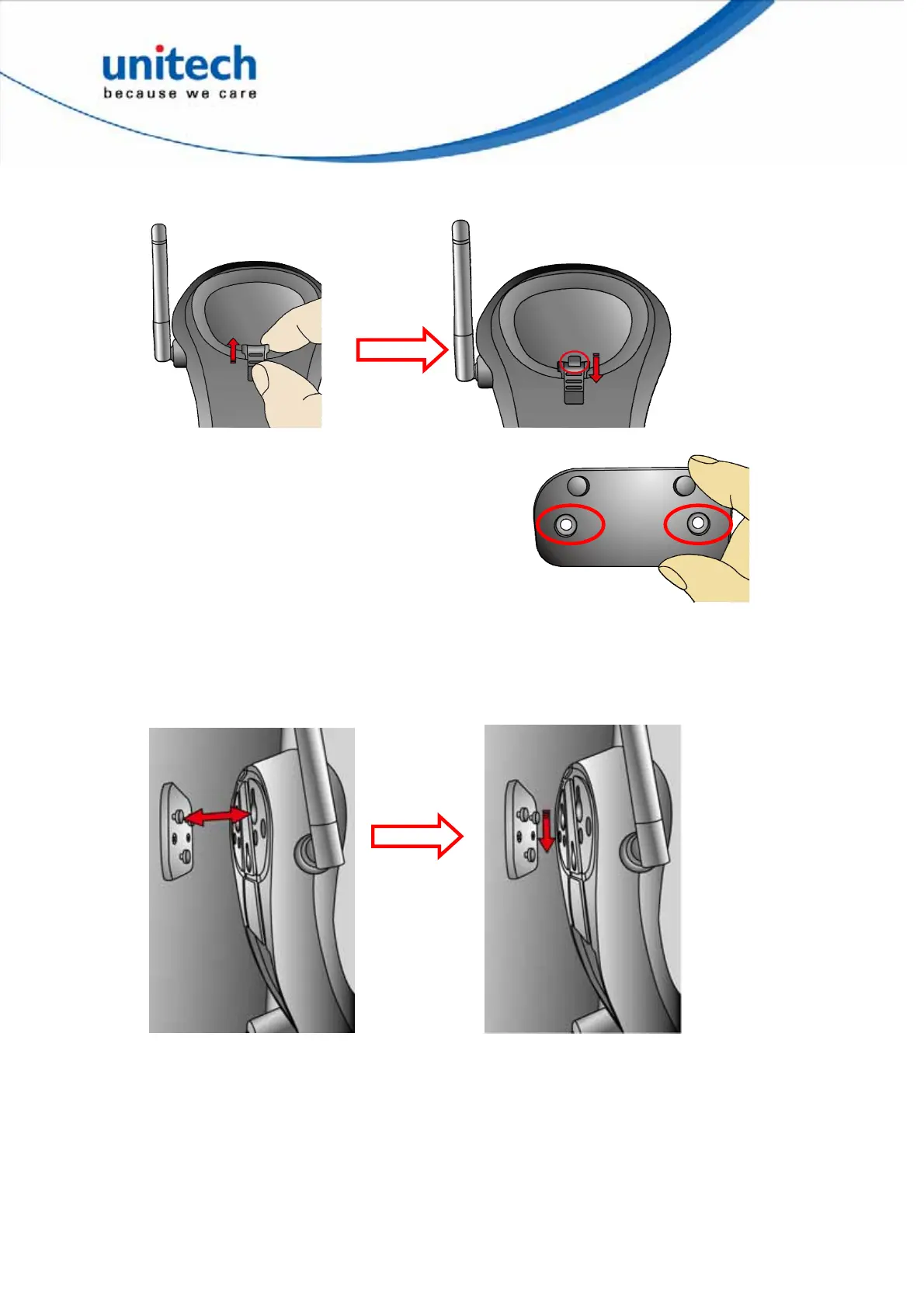 Step 5: Align the two holes on the bottom surface of the cradle respectively with the