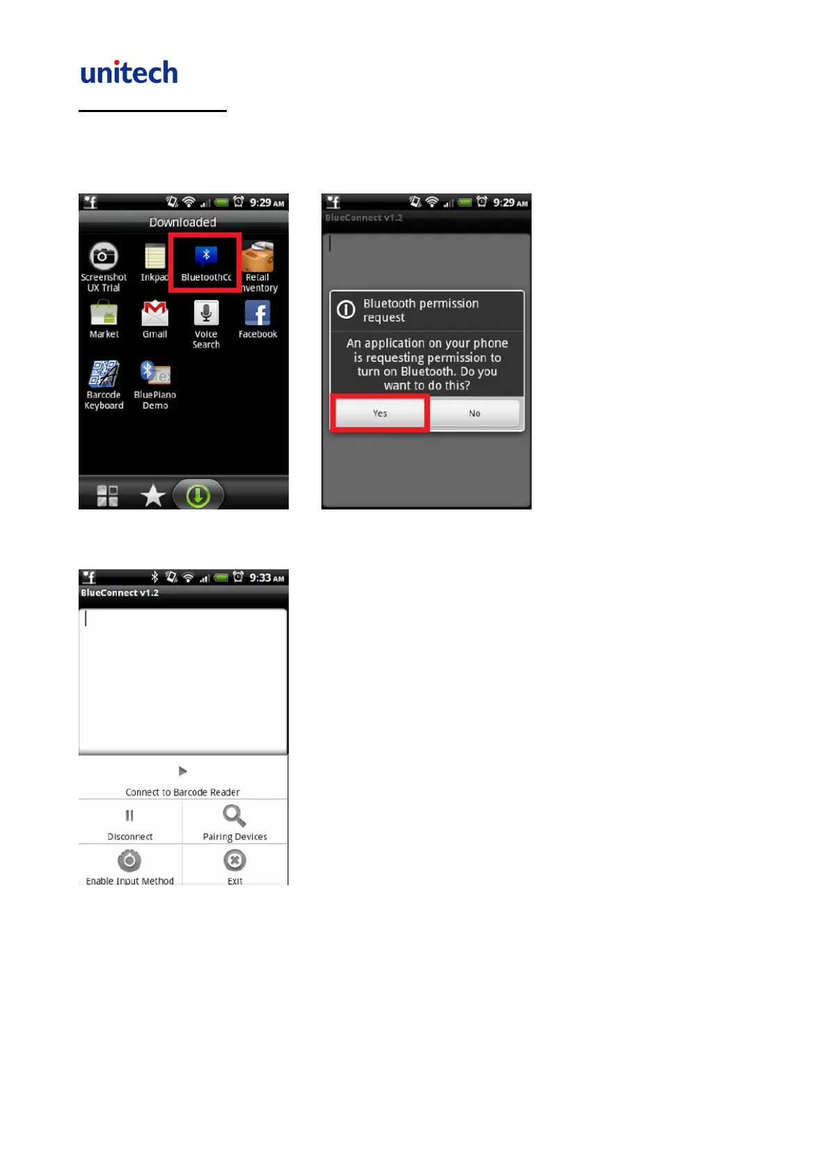2. Once you enter the BluetoothConnect, the application may ask you to enable Bluetooth