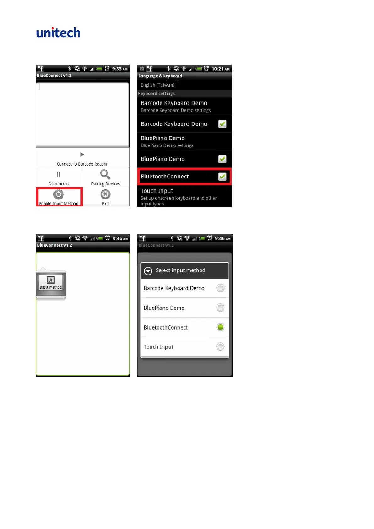 5. Long press on the panel to enable Input method menu and select BluetoothConnect.
