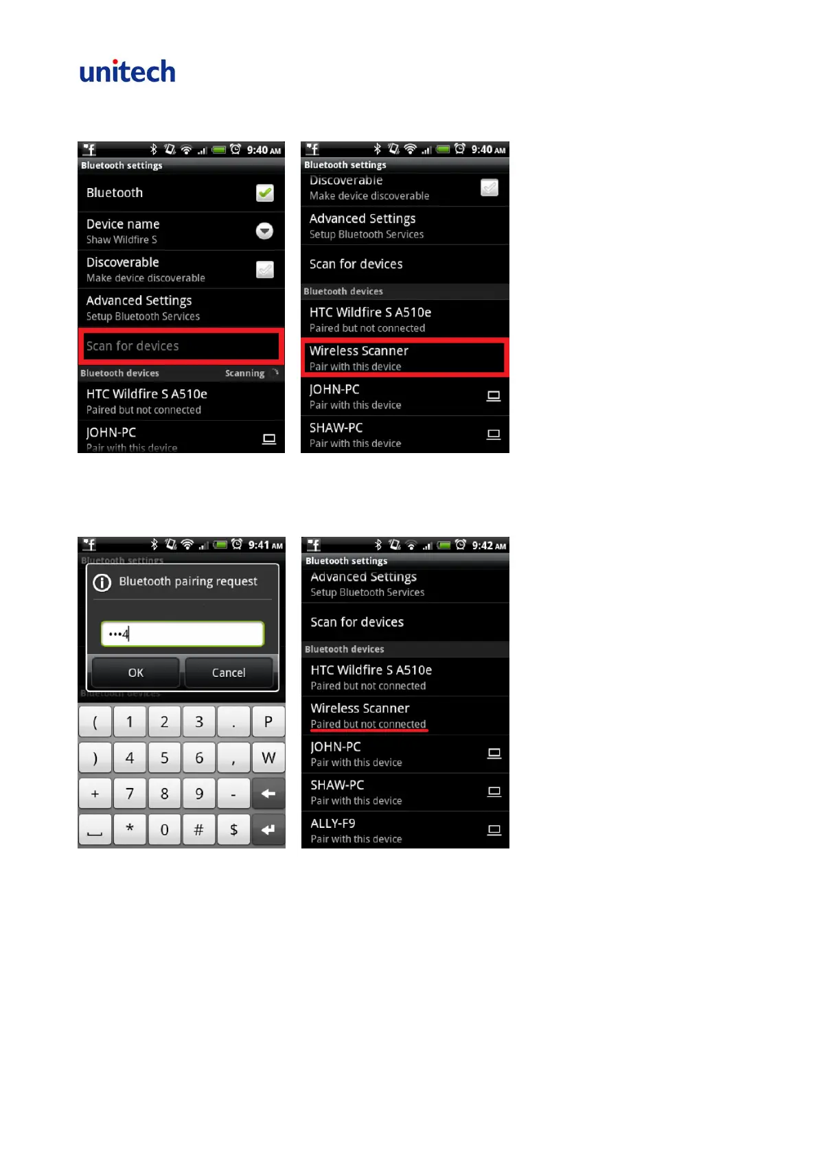 9. The default pairing code is 1234. After successful pairing, the description under Wireless