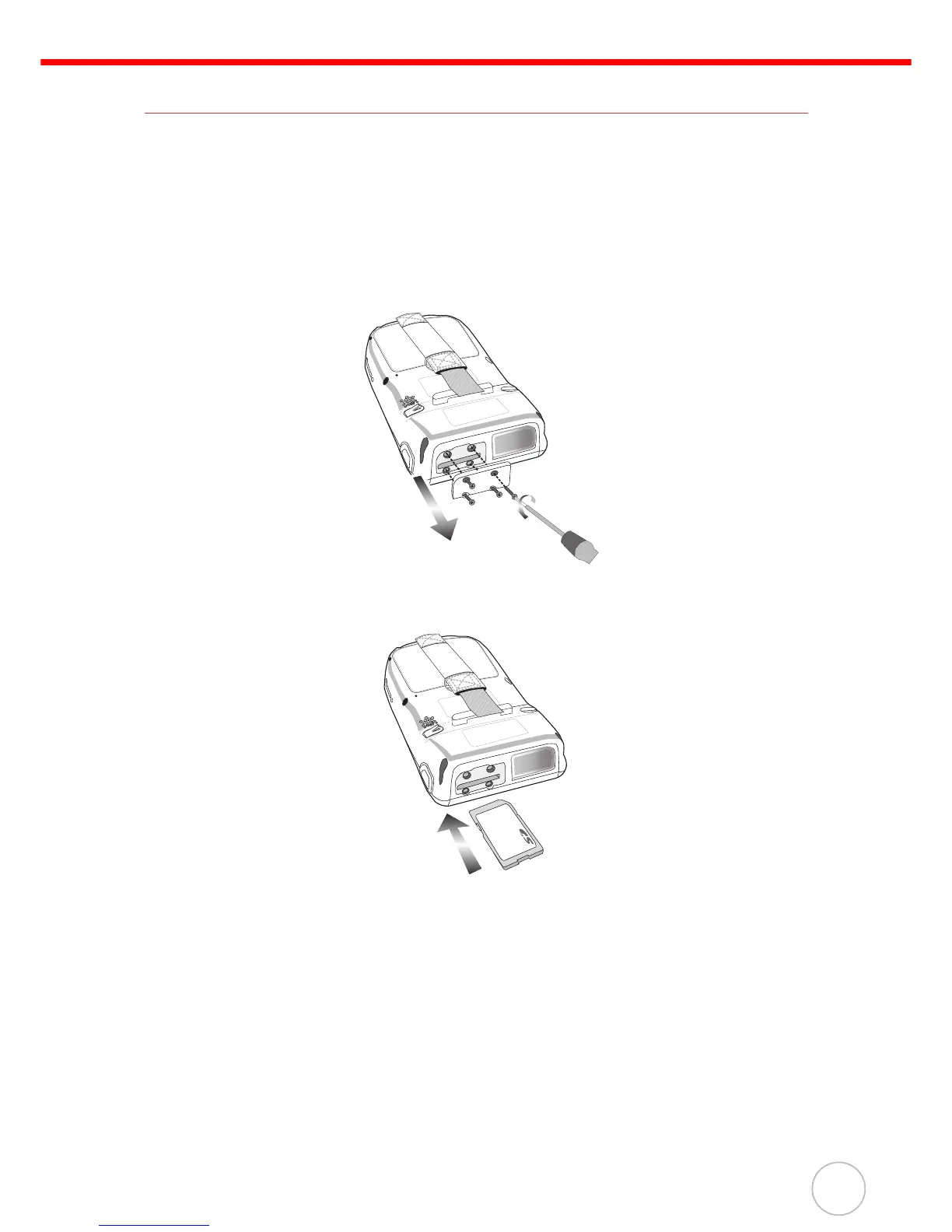 1. Remove the four screws from the SD compartment cover and remove the