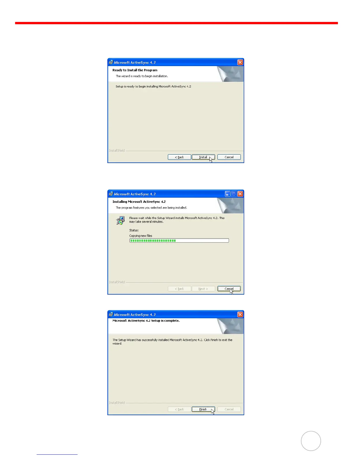 Sync and prompts you to begin the installation.