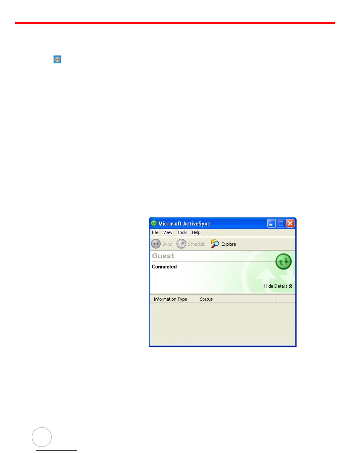 appears in your computer’s system tray as shown and ActiveSync Connection